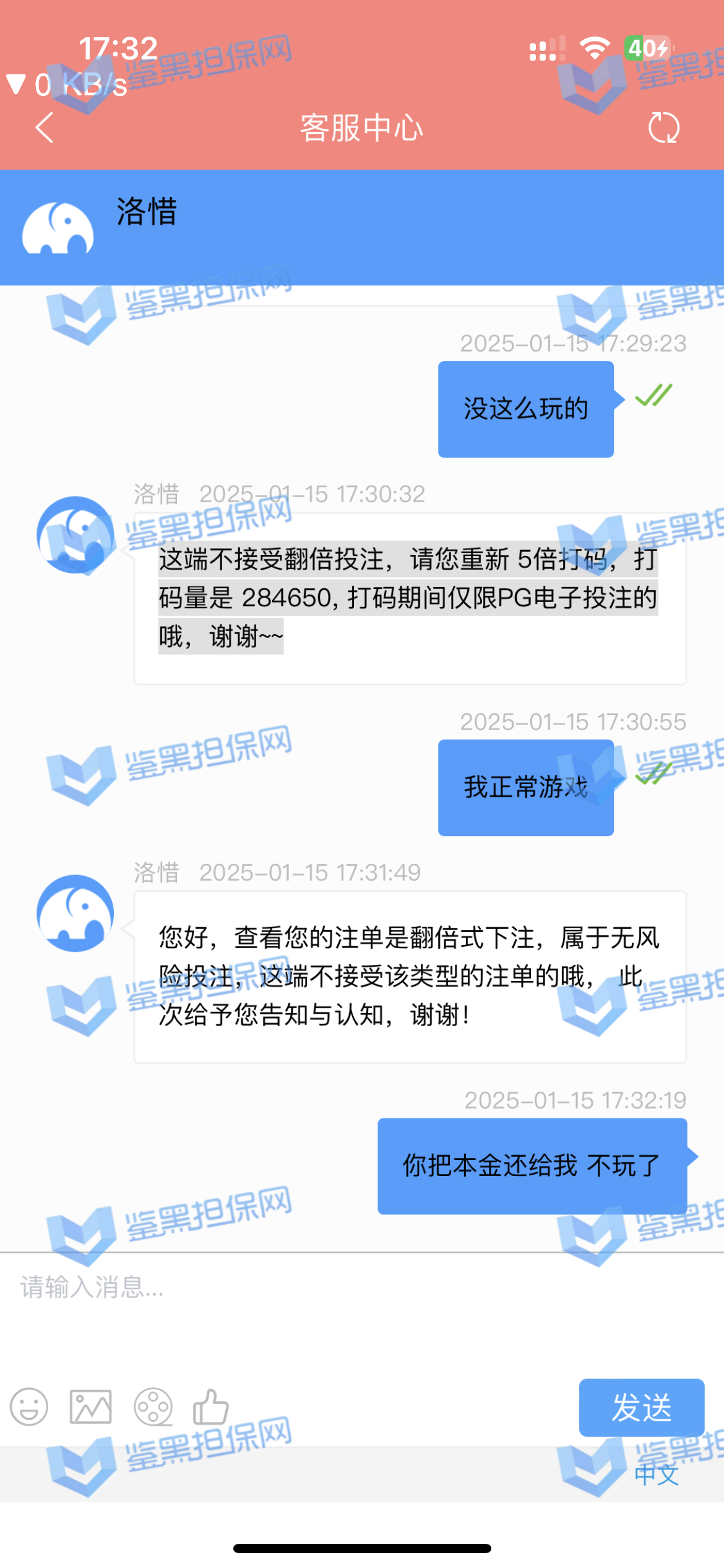 4.用户提交维权需为本人提交,若代替让人发布维权鉴黑担保网将拒绝受理;