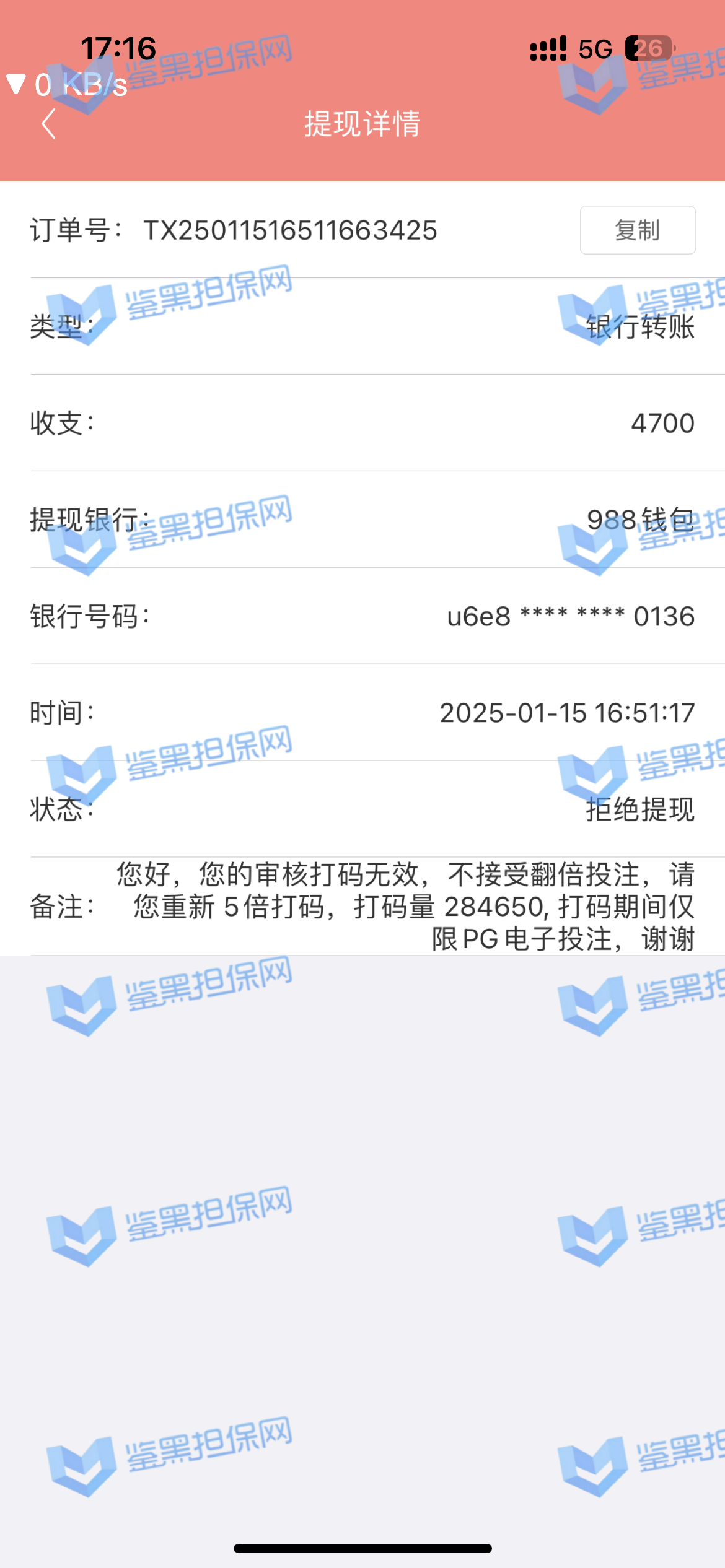4.用户提交维权需为本人提交,若代替让人发布维权鉴黑担保网将拒绝受理;