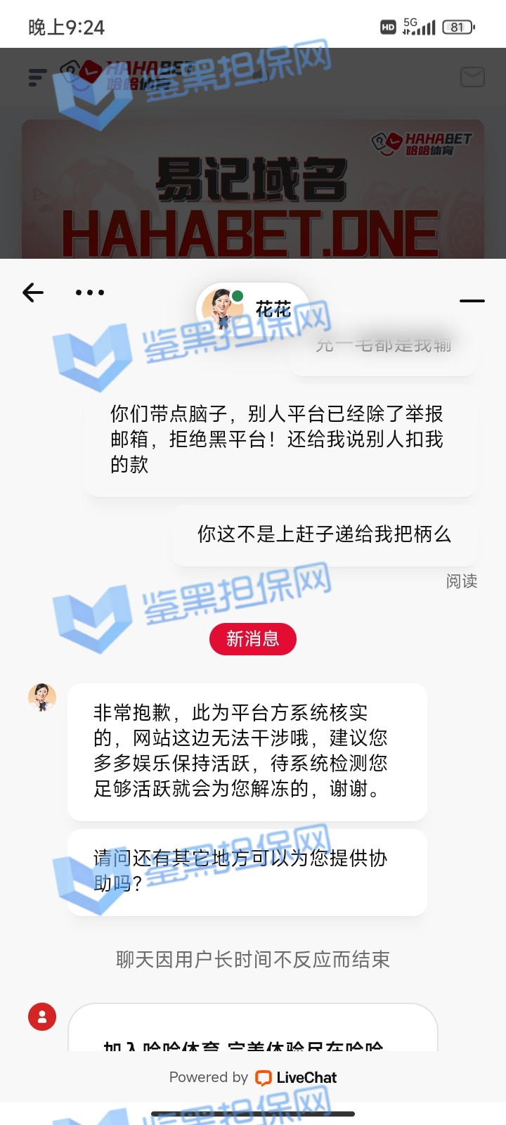 3、鉴黑担保网维权专员联系该平台相关负责人核实情况,针对需要活跃才可以出款的要求进行沟通,也指出是否可以一次解冻更多金额,对方不接受任何协商沟通,可见该平台黑款之心显著,还请广大玩家远离!!